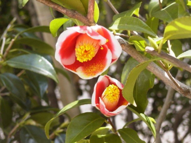 椿(または藪椿)tubaki ツバキ科 ツバキ属の常緑樹。照葉樹林の代表的な樹木