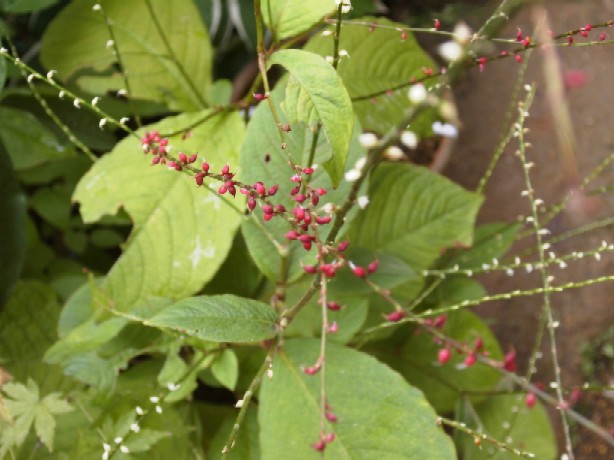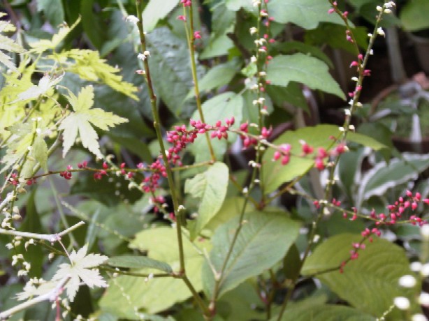 名前は花は総状花序で上半分が赤、下半分が白と紅白の水引に似ている