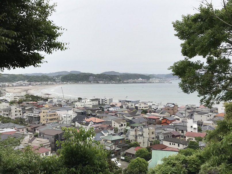 由比ガ浜方面の景色を眺め大きく深呼吸。