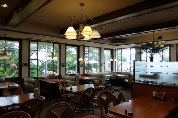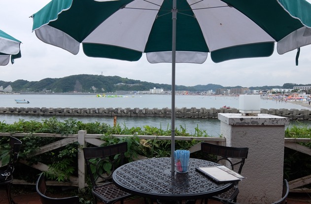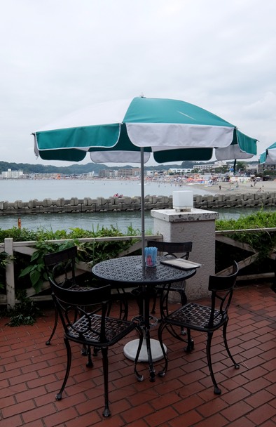 お洒落な室内はとても落ち着いた雰囲気があり逗子海岸を見ながら、また、お天気の良い日は外で