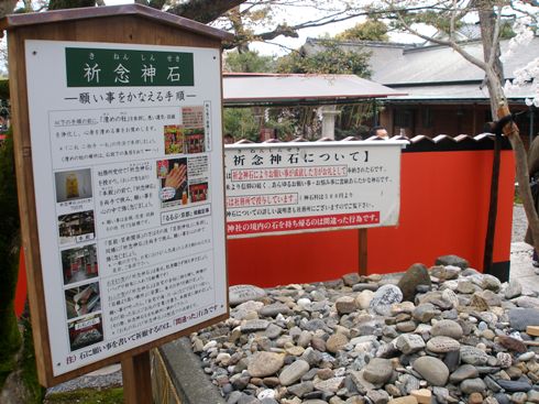 嵯峨天皇が嵐山に遊行した際、社前で牛車のながえが折れ動かなくなったことから門前右側の石を車折石(くるまざきいし)と呼び、正一位車折大明神の神号を贈られたことに由来。石に対する信仰が強く清めの社、悪運を浄化するパワー、祈念神石と願い事を叶えるパワースポットとして全国各地から参拝者が訪れる金運・良縁・厄除け・学業・芸能(芸術)の神社。