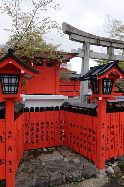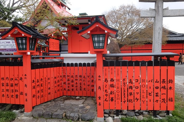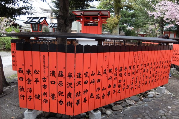 京都嵐山のパワースポットの芸能神社へ芸能人なら一度は参拝に来ていると聞きます。朱色の柱に芸名がいくつあるのか?私も沢山のパワーを戴きました!