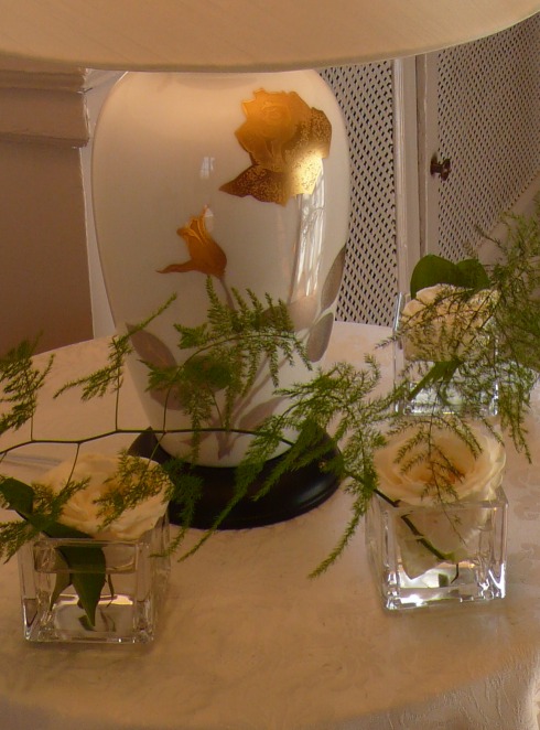 白地に金と銀で薔薇を描く・・・・・